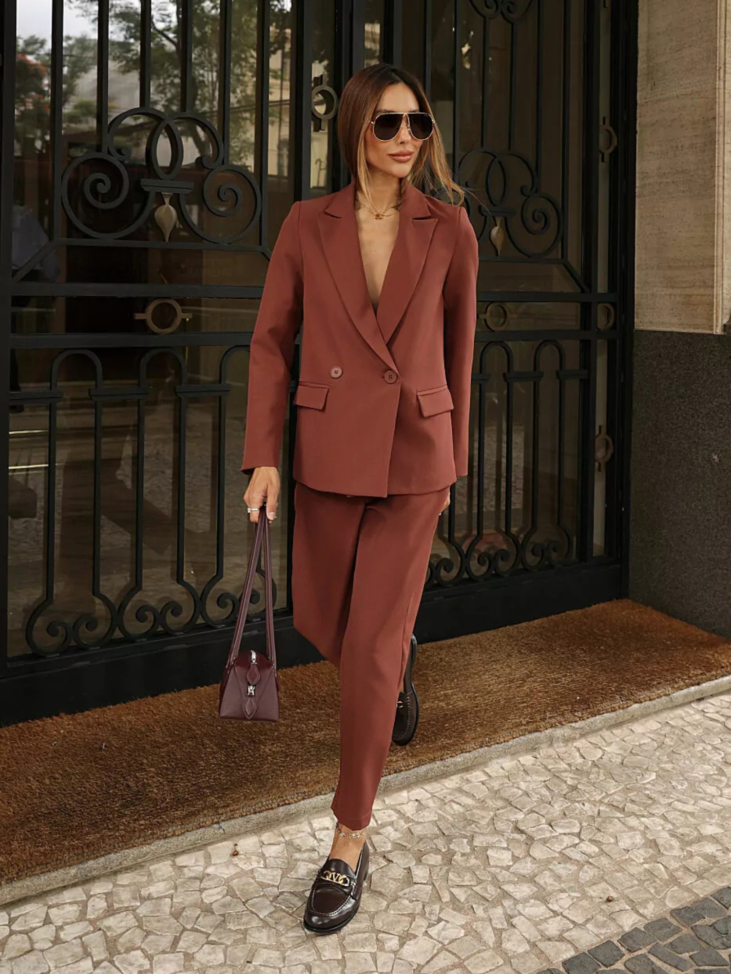 O blazer alfaiataria Maitê é uma peça sofisticada e atemporal, ideal para compor looks femininos elegantes com caimento alinhado e visual refinado. Com modelagem estruturada e proposta versátil, ele valoriza a silhueta e acrescenta presença à composição, sendo perfeito para combinações com calças de alfaiataria, saias, vestidos e jeans. É uma peça curada para mulheres que buscam moda feminina sofisticada, elegância atemporal e um guarda-roupa com mais estilo e intenção.
