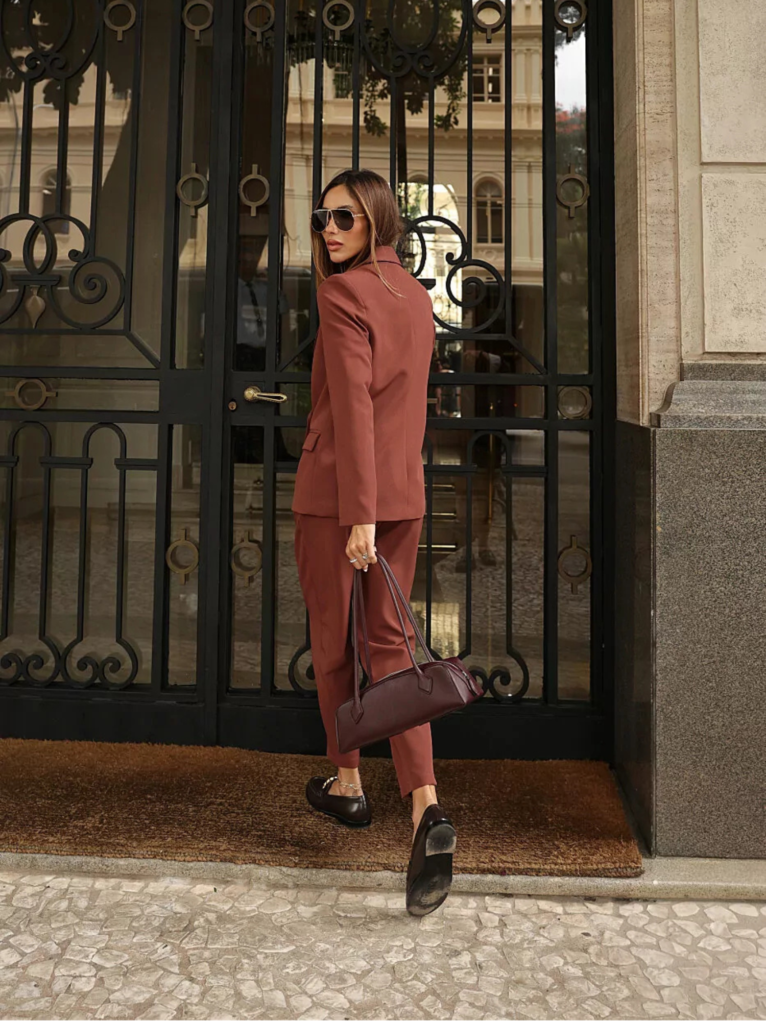 A calça cenoura alfaiataria Maitê é uma peça sofisticada e versátil, ideal para mulheres que buscam elegância com conforto no dia a dia. Em tecido plano e macio, ela apresenta cintura alta, fecho frontal e modelagem que valoriza a silhueta de forma sutil e refinada. Sem cós e com costuras que destacam a região da cintura, entrega um visual mais limpo e elegante. Os bolsos laterais acrescentam praticidade, enquanto o caimento confortável nos quadris e as pernas afuniladas trazem equilíbrio entre sofisticação e modernidade. É uma peça perfeita para compor looks femininos elegantes com camisas, blazers, tricôs e blusas ajustadas.